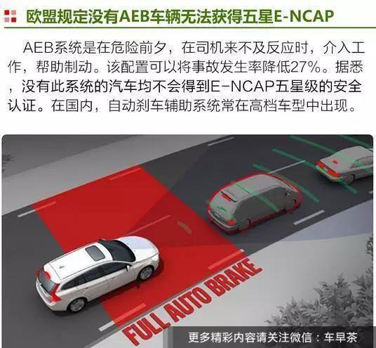 主動(dòng)剎車(chē)輔佐體系(AEB)的作業(yè)原理是當風(fēng)險即將呈現時(shí),駕駛者并沒(méi)有及時(shí)做出將車(chē)速下降或許逃避的做法,那么該體系會(huì )介入作業(yè),協(xié)助制動(dòng),對行車(chē)安全起到很主要的效果。據悉,在歐洲,沒(méi)有此體系的轎車(chē)均不會(huì )得到E-NCAP五星級的安全認證。歐盟也在14年宣布新規,為了進(jìn)步駕駛安全,請求悉數新車(chē)出廠(chǎng)需裝備主動(dòng)剎車(chē)輔佐體系(AEB)。而在國內,主動(dòng)剎車(chē)輔佐體系常在高級車(chē)型中呈現,并且許多人都沒(méi)聽(tīng)說(shuō)過(guò)。