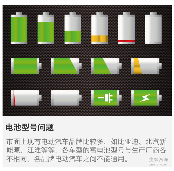 不同品牌車(chē)型電池材料也不相同,以EV200與比亞迪E6為例,EV200選用的是韓國SK公司三元鋰電池,而比亞迪E6選用的是自立研發(fā)出產(chǎn)的ET-POWER鐵電池,不能通用,每種電池均需求儲藏。
